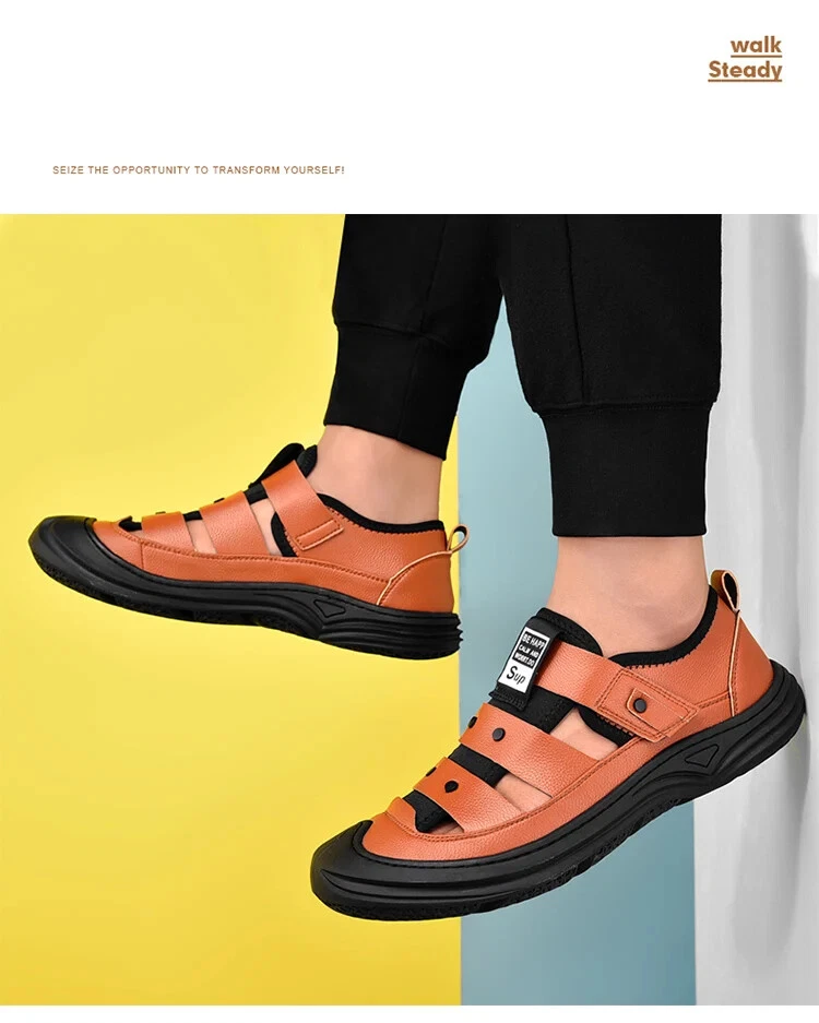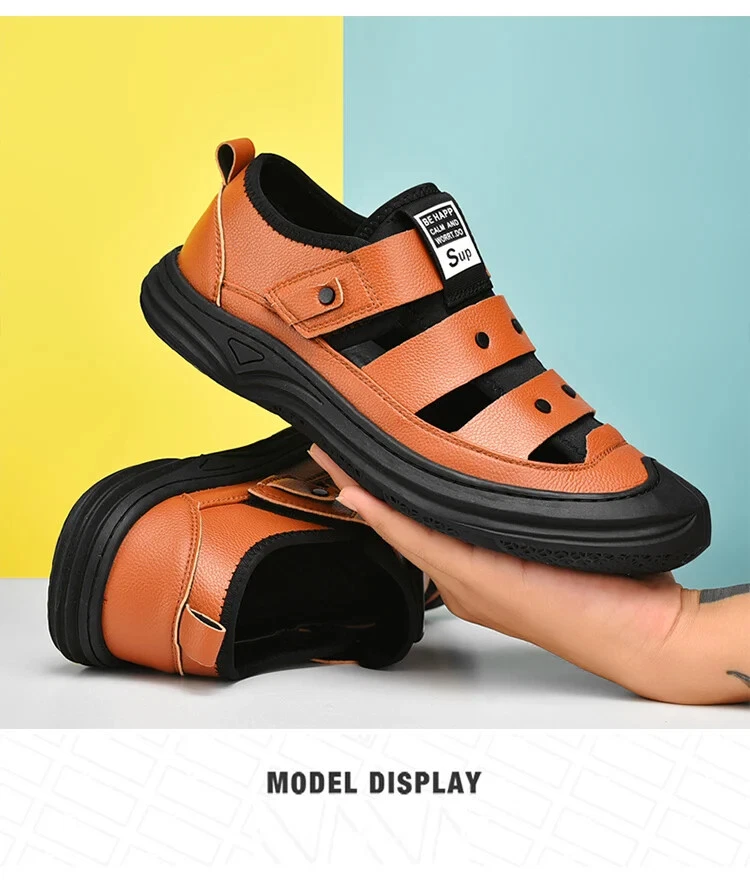 Men’s Leather Casual Shoes Breathable Lightweight Comfort Soft Sandals